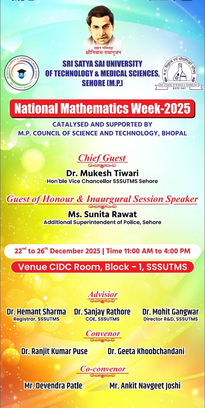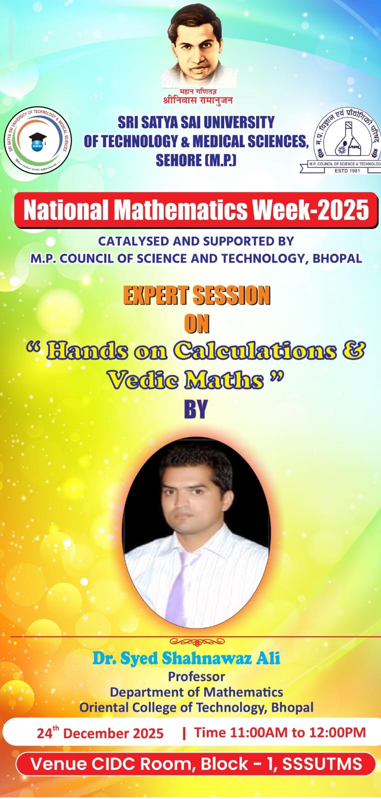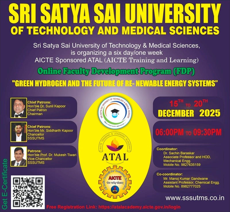 Since its founding in 2013 by merging of several multi-disciplinary institutions, Sri Satya Sai University of Technology and Medical Sciences Sehore, Bhopal (MP) is acclaimed for its outstanding contribution to teaching, research and service in Nation building. Today, the University stands to meet the enormous aspirations and expectations of society. Society wants us to nurture professionals and scholars of high caliber, who can offer solutions to a broad range of issues. This requires excellence in teaching and research at par with the best in the world.